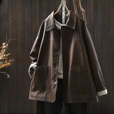 KERNEL COSMOS 油墨胶片 复古回潮轻中式小立领盘扣宽松皮衣外套