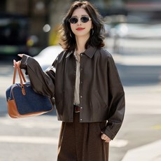 2026春季时尚纯色翻领pu水洗皮外套女G妈妈装洋气显瘦休闲皮衣