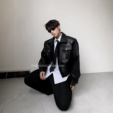 黑沧社/轻奢痞帅短款垫肩皮夹克男秋季高级cleanfit机车皮衣外套