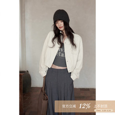 FF BLUE 杜比甜心 55棉两色圆领设计感皮衣拉链短款韩系百搭外套