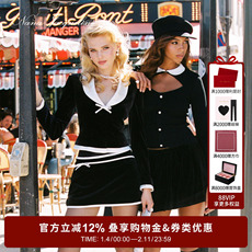NanaJacqueline冬季新款丝绒拼色蝴蝶结套装女垫肩西装上衣配半裙