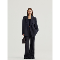 pusumede【现货7折】 职场图鉴 经典黑色翻领西装外套西裤套装
