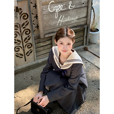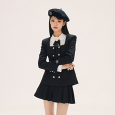 桃可了 航海诗篇 海军风西装外套女内搭方领衬衣+百褶半裙套装女