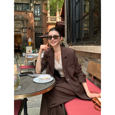 麂皮西装外套女2025秋冬新款美拉德色高级感御姐时尚西装短裙套装