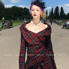 fortylions四十只狮 西太后 波点格纹网纱套装露肩西装上衣半身裙