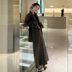 韩系老钱风西装外套半身裙两件套女秋冬新款高级感小个子套装穿搭