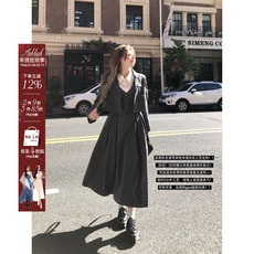 浅布调QBD春秋冬黑色千金小香风套装加绒加厚西装外套+气质短裙女