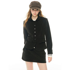 Maven Lin 意式品味 高级感灯芯绒西装外套女直筒半身裙白领套装