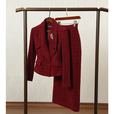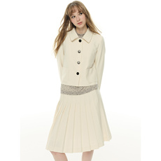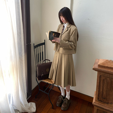 UNRETRO高级老钱短款西装外套女休闲气质西服+百褶半身裙两件套装