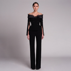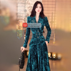 泰国潮牌女春秋高端名媛气质优雅高级感晚礼服宴会西装一字肩套装