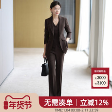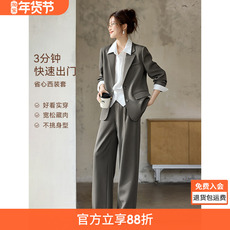 LANCY/朗姿2025秋新款高级感通勤羊毛西装外套女直筒阔腿西裤套装