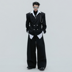 龙叨叨秋季新品轻奢高级感设计款西装套装男痞帅宽松休闲西服西裤