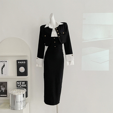 两件套2026春季新款双排扣西装马甲连衣裙高级感气质通勤套装2119