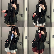 【跑单限购2】海月社原创JK套装叠穿秋冬学院风穿搭西服开衫格裙