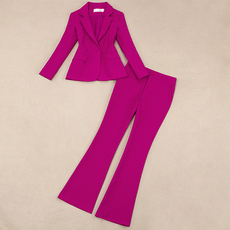 2025春季新款咖色金丝绒修身显瘦时尚微喇裤套装高端丝绒外套西服