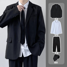 2025新品春秋季小众垫肩短款小西装套装男百搭简约休闲高级感裤子