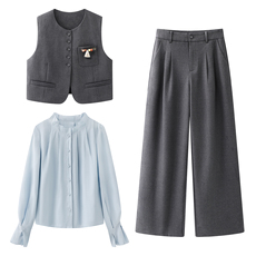 MavenLin 老钱风高端亚麻V领西装马甲套装女夏季休闲阔腿裤两件套