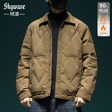 90鸭绒轻薄羽绒服男宽松大码冬季新款户外防风加厚保暖衬衫领外套