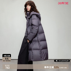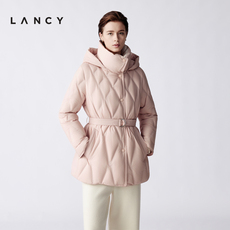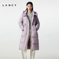 【匈牙利白鹅绒】LANCY/朗姿2025冬新款气质抽绳收腰连帽长羽绒服