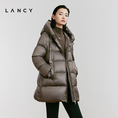 【匈牙利白鹅绒】LANCY/朗姿2025冬季新款连帽抽绳收腰中长羽绒服