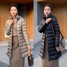 九江羽绒官方旗舰店轻薄款羽绒服女中长款修身羽绒外套加肥大码脱