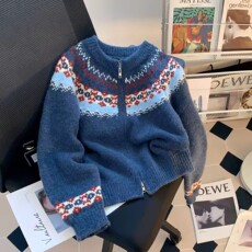 WEERE秋冬新品针织拉链外套原创慵懒宽松休闲高领毛衣开衫男女