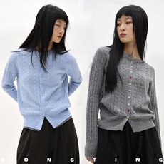 绵羊毛+桑蚕丝假两件撞色针织衫开衫女上衣内搭羊毛衫长袖外套女