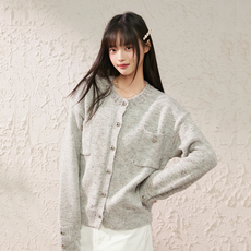 橘子树在哪儿韩系圆领针织开衫女秋季氛围感软糯显瘦气质短款上衣