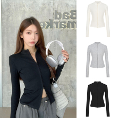 MosesQueen魔西女王纯色简约双拉链立领针织开衫女修身外穿上衣春