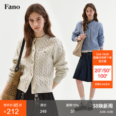 范洛Fano 基础百搭抗起球纱线杂点绞花字母刺绣针织开衫女2026春