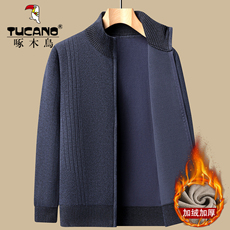 啄木鸟秋冬中老年开衫男士毛衣加厚加绒爸爸休闲针织上衣外套保暖