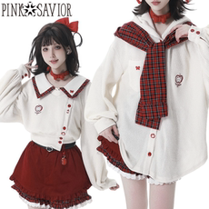 CyNi 甜美针织拼接兔毛外套上衣夹棉开衫加绒加厚秋冬软糯温柔女