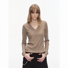CountryMoment羊毛混纺紧身V领针织衫外套女春美式打底内搭毛线衣
