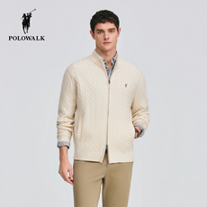POLOWALK男式针织衫2026春季新品百搭显瘦绞花半高领男装针织开衫