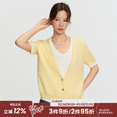 HM女装毛针织衫春季慵懒舒适打底衫短款开衫薄款外套0579541
