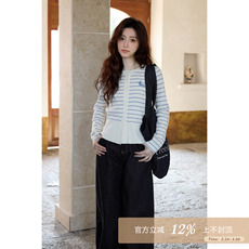 衣服穿搭法式温柔风针织假两件毛衣开衫女春季条纹拼接上衣针织衫