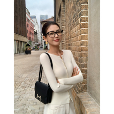 MosesQueen魔西女王针织开衫女春秋修身显瘦长袖短款毛衣外套上衣