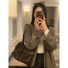 话里简约风娃娃领浣熊开衫2025秋季新款韩版翻领显瘦上衣针织衫女