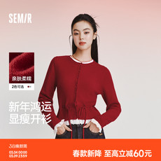 新年红 森马针织开衫女春红色毛衣蕾丝收腰2026新款新年甜美上衣