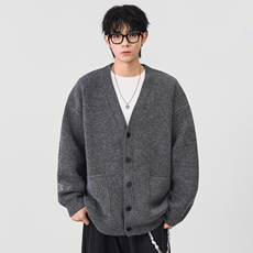 半高领纽扣开衫毛衣男生2026新款春秋季羊毛上衣休闲针织外套男款