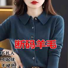 品牌高级感羊毛开衫女POLO领秋冬新款宽松毛衣外套翻领针织羊绒衫