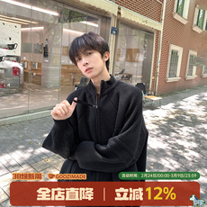 BUTQIU日系复古秋冬假两件撞色领设计针织开衫宽松休闲毛衣外套男