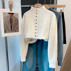 半高领仿水貂绒毛衣女打底衫2025秋冬新款宽松针织开衫加厚上衣潮