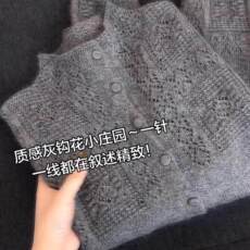 欧货高级感重工勾花灰色开衫女2025冬长袖宽松显瘦百搭减龄针织衫