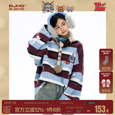 佐丹奴针织衫女春季新款花纱开衫混色毛衣海军领针织上衣13355762