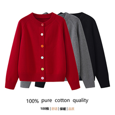 螺纹圆领短款针织开衫女薄羊毛毛衣纯色小外套上衣春秋新款女修身