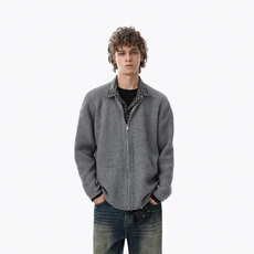 MRNEARLY美式复古拉链开衫毛衣男女灰色翻领高级感cleanfit针织衫