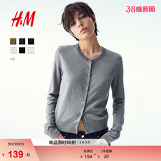 HM女装毛针织衫春季保暖开衫外套酒红色打底衫1237776
