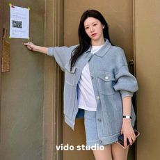 高允真同款浅蓝色韩系工装风外套短裙休闲针织半裙套装26早春新款