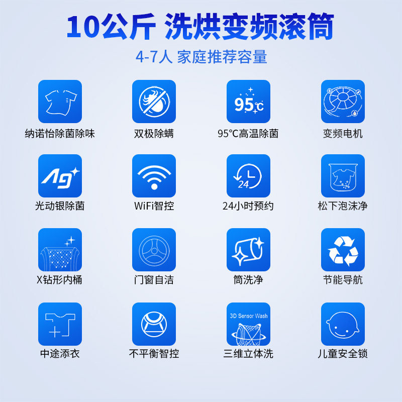 松下全自动嵌入式除螨滚筒洗衣机